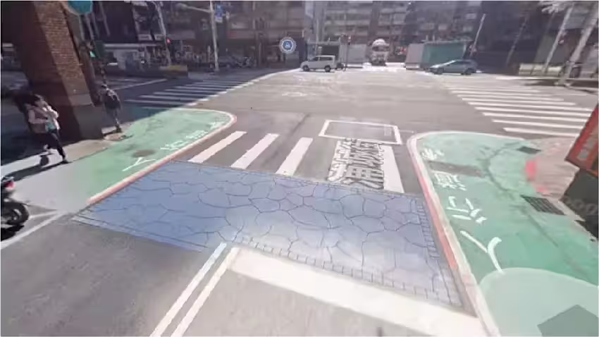 有網友在Threads貼出照片驚呼:「路修好後多了藍紫色方塊,這是幹嘛用的?」留言區瞬間炸開,不少人以為這是「友善科技執法」、「新一波荷包削弱陷阱」。