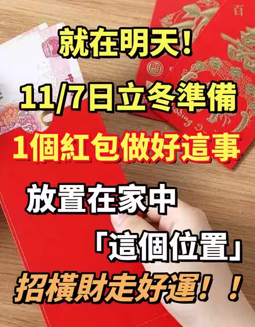 就在明天! 11/7日立冬準備「1個紅包做好這事」放置在家中這個位置,招橫財走好運!