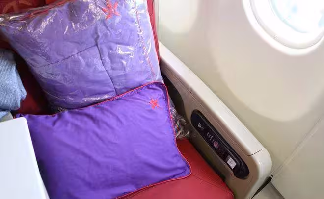 其實一般來說,從飛機始飛站的時候,一批被清洗和消毒過的毛毯,就被包裹上塑料袋,運送到飛機上,開始了它們一天的旅程。