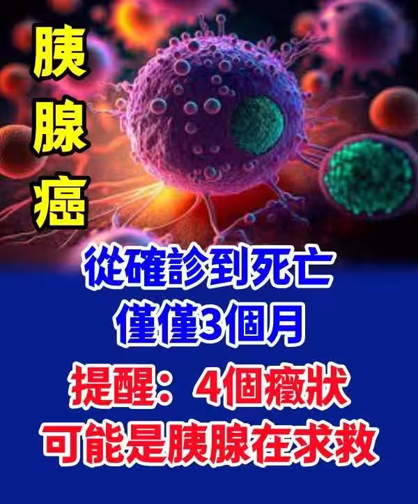 胰腺癌:從確診到死亡僅僅3個月,提醒:4個症狀,可能是胰腺在求救!!
