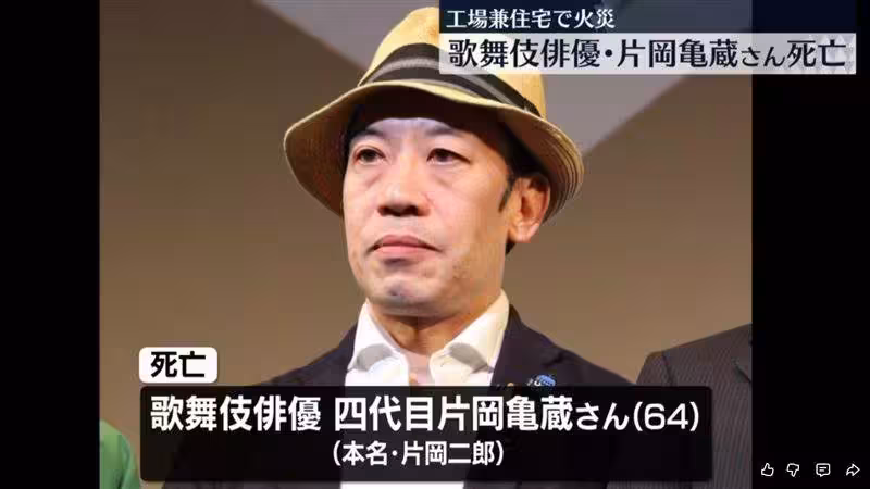 資深歌舞伎演員片岡龜藏不幸辭世,享壽64歲,京都演出前夕驚傳葬身東京沙漠火災工廠