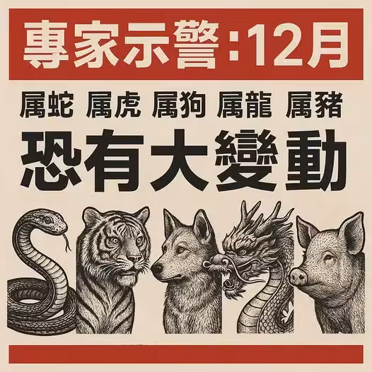 專家示警:12月「屬蛇 屬虎 屬狗 屬龍 屬豬」恐有大變動!