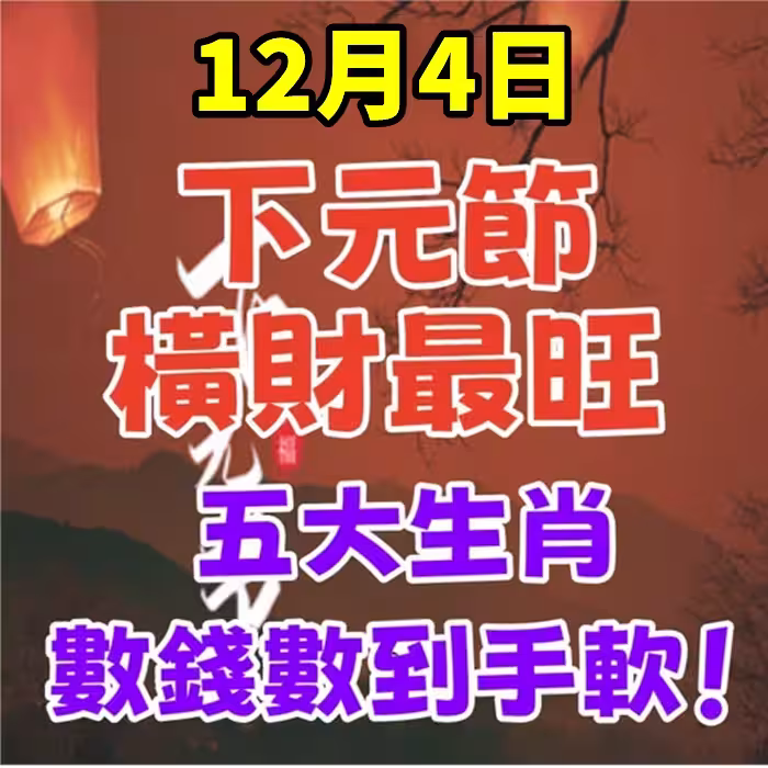 12月4日,下元節橫財最旺,五大生肖數錢數到手軟!12月4日正值下元節,這一天象徵著歲末的來臨,也是收穫財富的好日子。