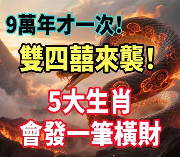 傳說中的「雙四囍」天象即將降臨,據古籍記載,此種星象組合需9萬年才會出現一次,象徵天地氣運交疊,五行能量爆發,是財富重分配的絕佳時機!命理專家指出,本次雙四囍將引動「偏財宮」,有五大生肖會受到吉星高照,橫財運勢一飛沖天,快來看看你是否榜上有名!