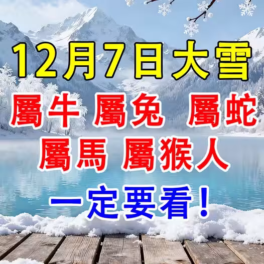12月7日大雪「屬牛 屬兔 屬蛇 屬馬 屬猴人」一定要看!