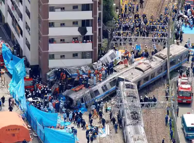 日本列車出軌釀107死562傷!2節車廂「撞入公寓大樓」 出事原因曝光 「駕駛害怕被罵」