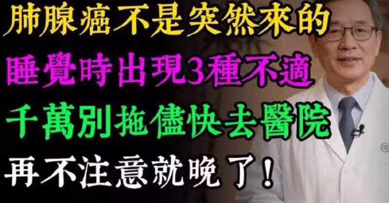 肺腺癌不是突然來的!睡覺時身體若有3種「怪象」,千萬別拖儘快去醫院,再不注意就晚了!