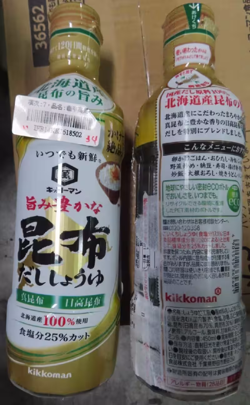 食藥署指出,這批由忠信國際開發事業有限公司自日本引進的龜甲萬醬油,包括高湯醬油、昆布味高湯醬油及牡蠣味高湯醬油三種品項。