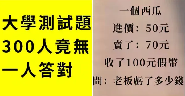 大學測試題,300人竟無一人答對