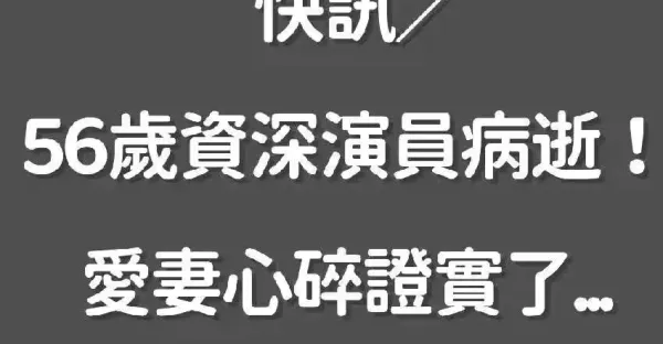 快訊/56歲資深演員病逝!愛妻心碎證實了