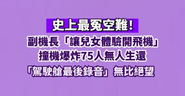 史上最冤空難!副機長「讓兒女體驗開飛機」撞機爆炸 75人無人生還「駕駛艙最後錄音」無比絕望