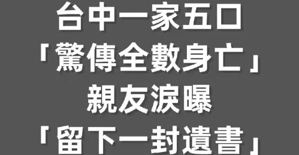 快訊/台中一家五口「驚傳全數身亡」!親友淚曝「留下一封遺書」死因曝光~