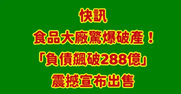 快訊/食品大廠驚爆破產!「負債飆破288億」震撼宣布出售