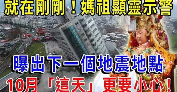 就在剛剛!媽祖顯靈發出緊急通知,下一個「大地震地點」!10月「這天」更要小心!