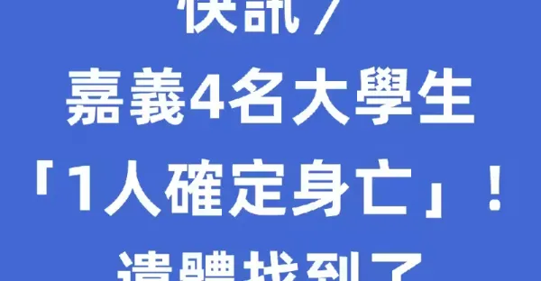 快訊/嘉義4名大學生「1人確定身亡」!遺體找到了