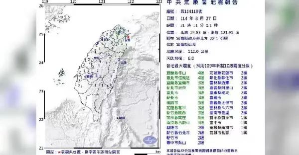 快訊/國家警報大響!宜蘭規模6.0強震 北部劇烈搖晃