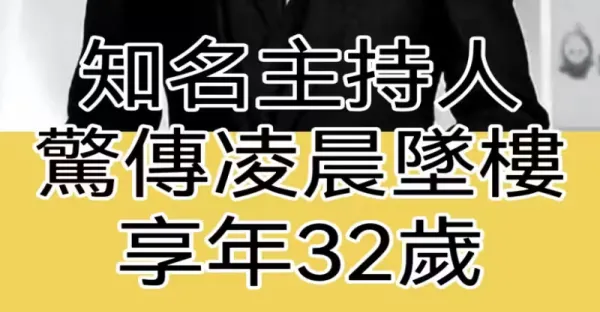 知名主持人 驚傳凌晨墜樓 享年32歲