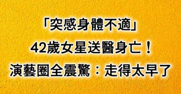 「突感身體不適」42歲女星送醫身亡!演藝圈全震驚: 走得太早了