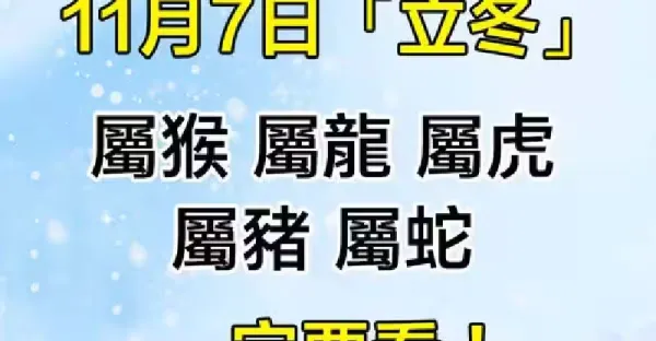 11月7日「立冬」「屬猴 屬龍 屬虎 屬豬 屬蛇」一定要看!