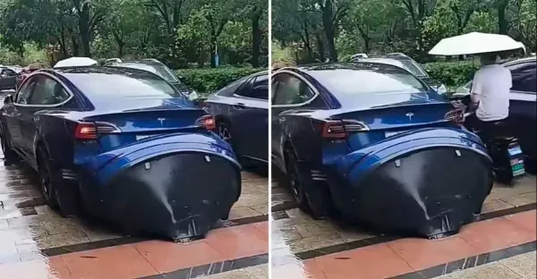 路上遇到特斯拉車尾「鼓出一大塊」,他好心上前「尋車主」想告知,卻遭網友阻攔:你不要命了嗎