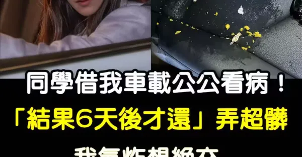 同學要載公公看病!忙和我借車「結果6天後才還」還弄超髒 我氣炸想絕交「直到昨天洗車」我瞬間臉紅了