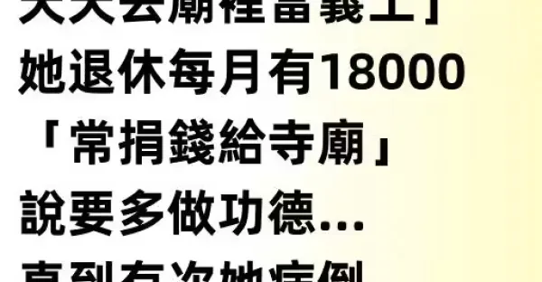 爸爸心梗走了!媽媽從此信佛更虔誠「退休後天天去廟裡當義工」,她退休每月有18000「常捐錢給寺廟」說要多做功德… 直到有次她病倒「付醫藥費時我一看她的帳戶」當場腿軟