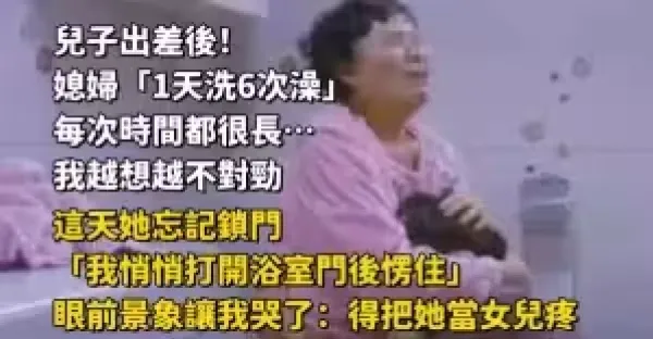 兒子出差後!媳婦「1天洗6次澡」每次時間都很長… 我越想越不對勁,這天她忘記鎖門「我悄悄打開浴室門後愣住」眼前景象讓我哭了:得把她當女兒疼!