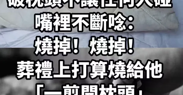 公公臨終前「緊抓破枕頭不讓任何人碰」嘴裡不斷念:燒掉!燒掉! 葬禮上打算燒給他「一剪開枕頭」3兒女淚崩:瞞我們那麼多年~