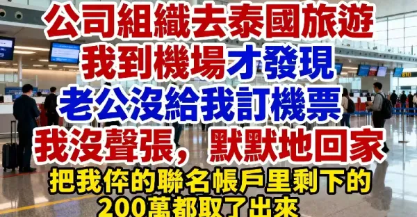 公司組織去泰國旅遊,我到機場才發現老公沒給我訂機票,我沒聲張,默默地回家,把我倆的聯名帳戶里剩下的200萬都取了出來