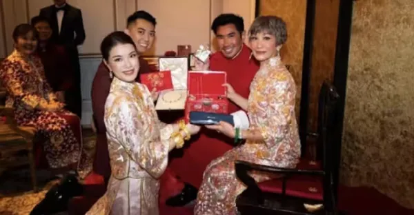 利孝和外孫女閉門婚宴曝光,跪地敬茶獲贈珠寶,母女同穿金線裙褂