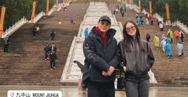 李連杰在九華山祈福,打扮樸素面容滄桑真實,與女兒在佛像前合照