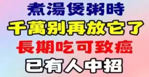 常常喝湯的要注意!煮湯煲粥千萬別再放它了,長期吃可致癌!已有人中招!