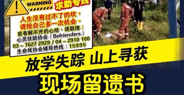 放學失蹤 山上尋獲 現場留遺書 中四男生不幸離世