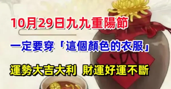10月29日九九重陽節,一定要穿「這個顏色的衣服」運勢大吉大利, 財運好運不斷